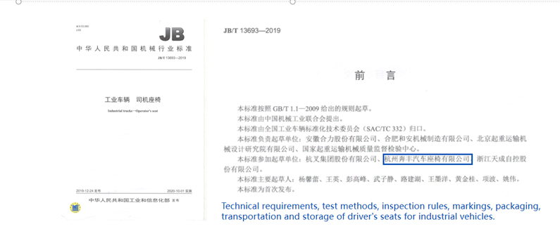 (Mga teknikal na kinakailangan, pamamaraan ng pagsubok, mga panuntunan sa inspeksyon, pagmamarka, packaging, transportasyon at pag-iimbak ng mga upuan sa pagmamaneho para sa mga pang-industriyang sasakyan.)